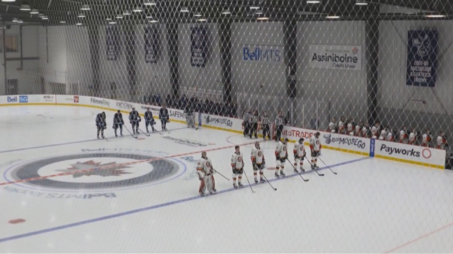 The Manitoba Moose tied the game with just 1:23 remaining, but ended up losing to the Stockton Heat just 34 seconds into the overtime period on Monday at the Bell MTS Iceplex.